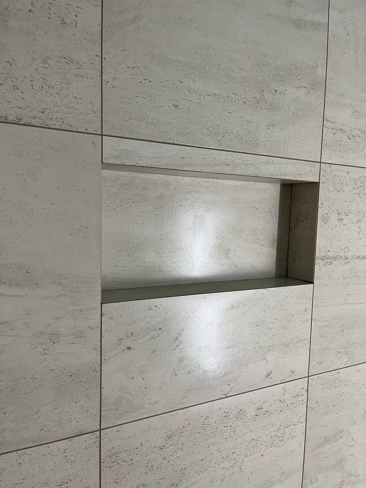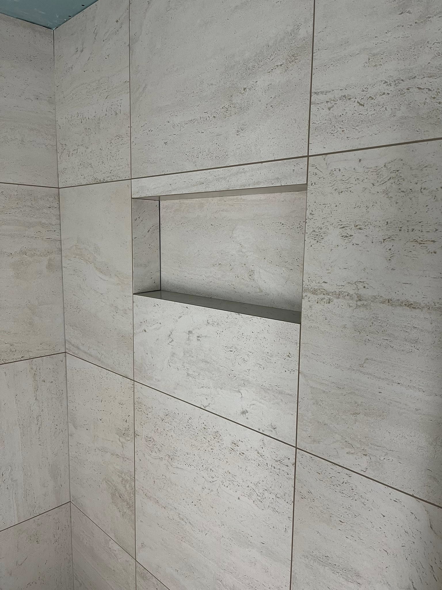 Afgelopen week hebben wij in Loosdrecht deze prachtige badkamer mogen realiseren. De opdrachtgever had een duidelijke wens: een volledig strak resultaat zonder zichtbare hoek- of tegelprofielen. Alle tegels zijn daarom volledig in verstek verwerkt, wat zorgt voor een minimalistische en luxe uitstraling. Van de nis in de douche tot de strakke afwerking rondom het toilet: elk detail is met zorg uitgelijnd en afgewerkt. Door het gebruik van grote tegels, rustige kleuren en perfect doorlopende lijnen ontstaat een moderne badkamer met een tijdloos karakter. Een project waar vakmanschap, precisie en oog voor detail samenkomen — en waar wij met recht trots op zijn. Wilt u ook een badkamer met deze hoogwaardige afwerking, zonder zichtbare profielen en met strak tegelwerk tot in de puntjes verzorgd? Neem gerust contact met ons op, wij denken graag met u mee.