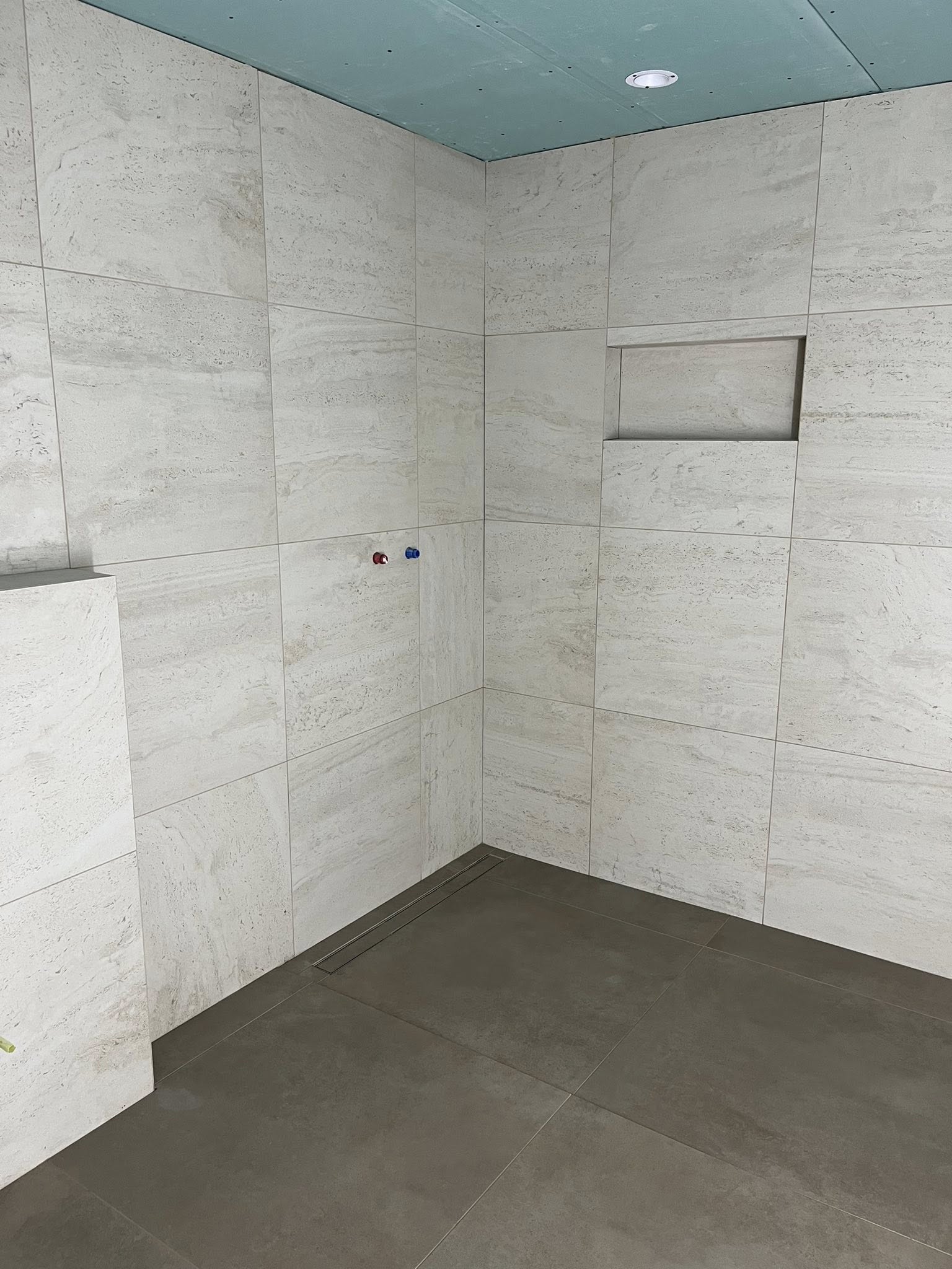 De opdrachtgever had een duidelijke wens: een volledig strak resultaat zonder zichtbare hoek- of tegelprofielen.