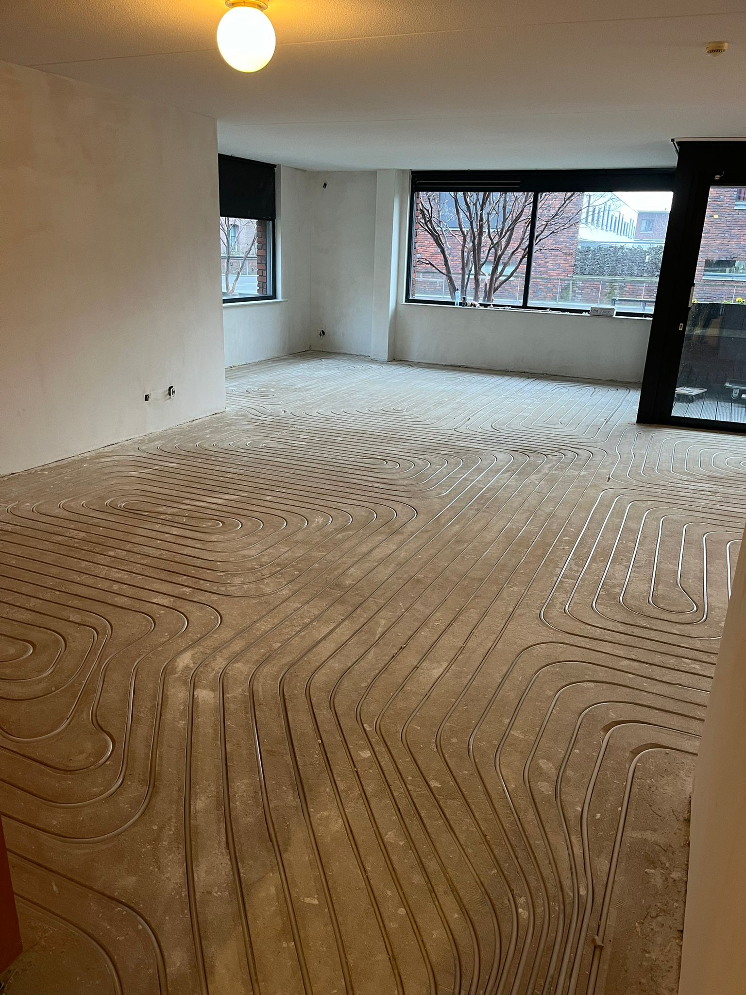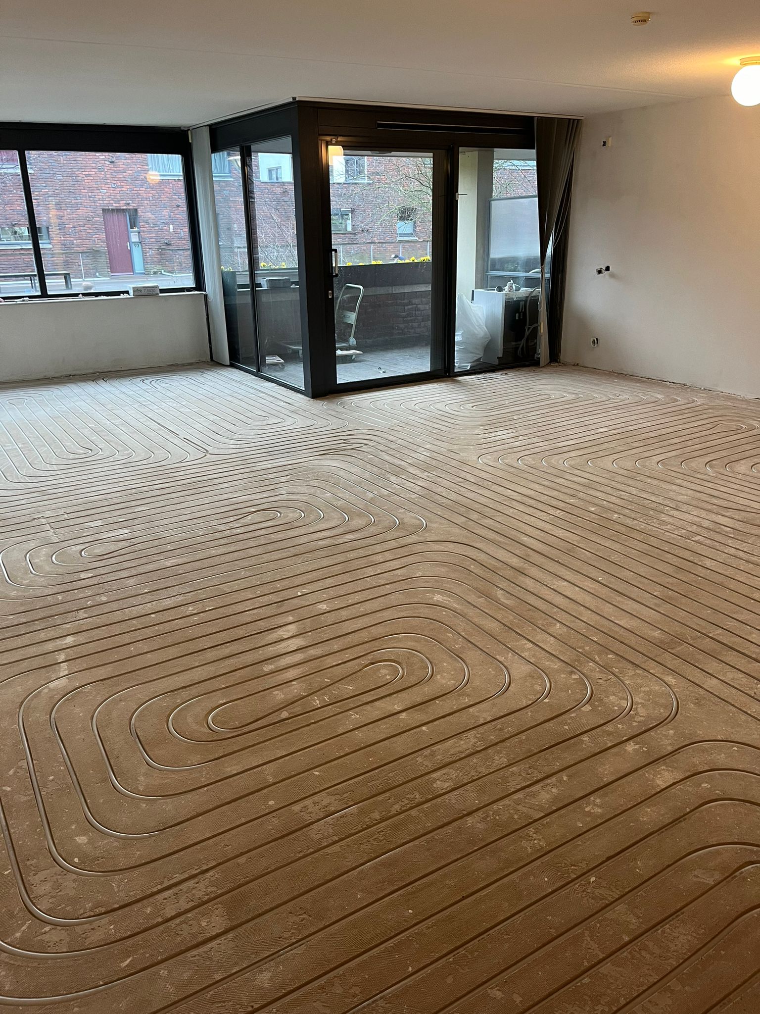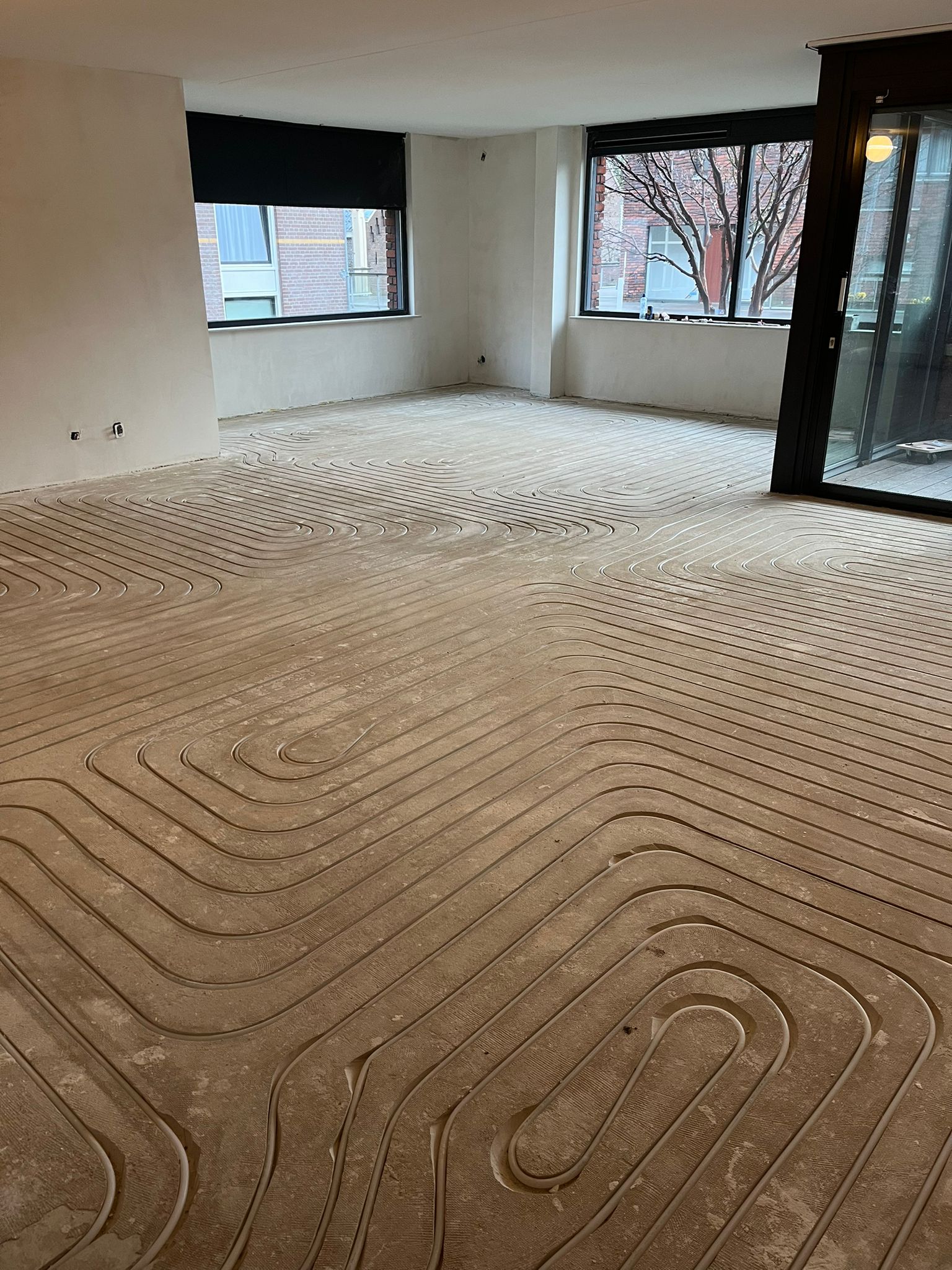 Voor dit project heeft de klant ons gevraagd om vloerverwarming in te frezen en aan te sluiten in een bestaande vloer van maar liefst 68 m². Een efficiënte oplossing om extra comfort te creëren zonder de vloer volledig te verhogen. De vloerverwarming is nauwkeurig ingefreesd volgens een strak patroon, zodat de warmte gelijkmatig over de ruimte wordt verdeeld. Hierbij is rekening gehouden met de indeling van de woning en de gewenste warmteafgifte per zone. Na het infrezen zijn de leidingen professioneel aangesloten en netjes weggewerkt. De vloer is vervolgens schoon en strak achtergelaten, klaar voor verdere afwerking zoals egaliseren of tegelwerk. Dankzij deze methode profiteert de klant van een comfortabele en energiezuinige verwarmingsoplossing. Dit project laat perfect zien hoe vloerverwarming infrezen een snelle en effectieve manier is om bestaande woningen te voorzien van modern wooncomfort.